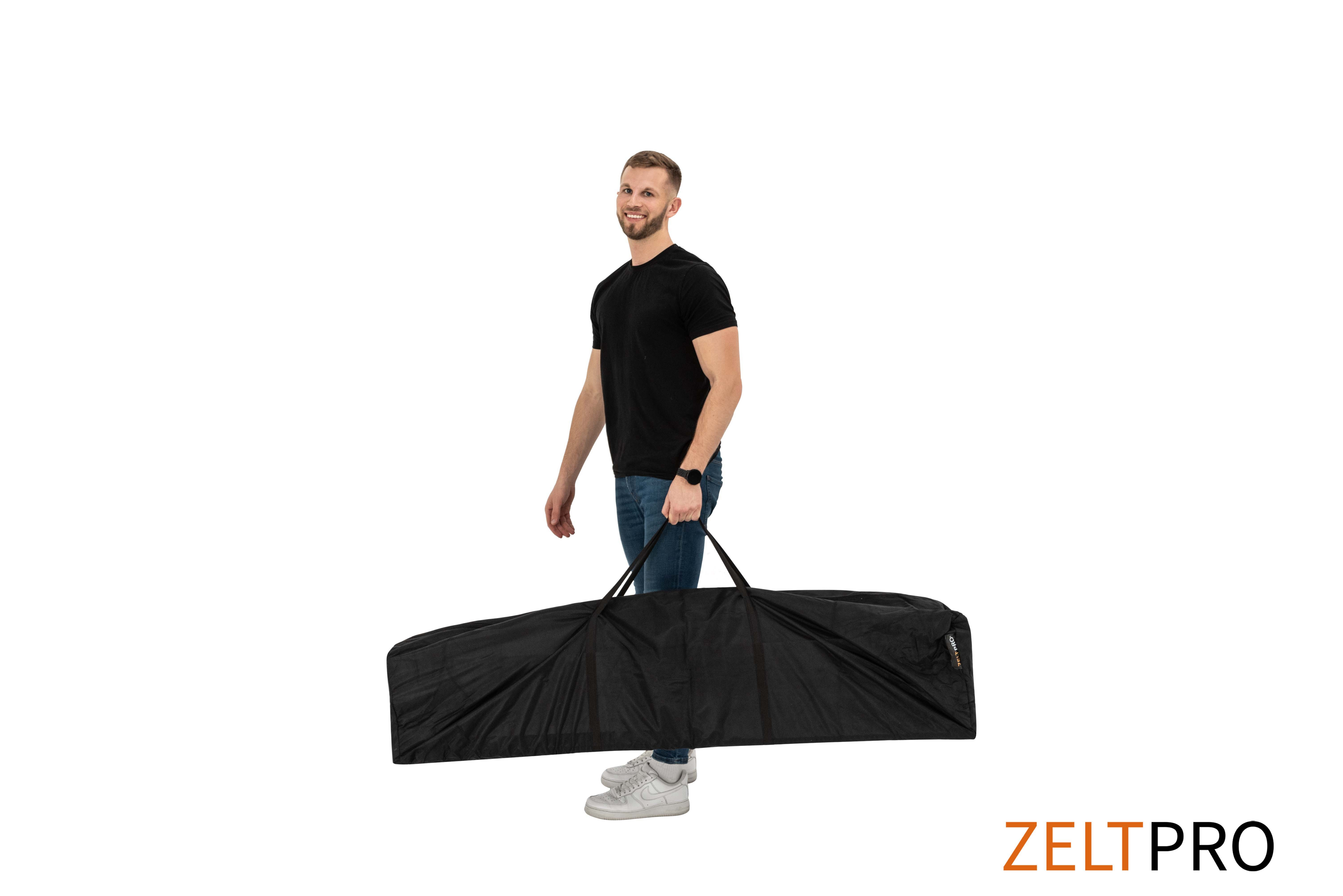 Iga meie poolt müüdava pop-up telgi põhivarustusse kuulub kvaliteetne transpordikott, mis aitab Sul oma telki kiiresti ja lihtsalt ühest kohast teise viia. Kott on valmistatud vastupidavast Oxfordi materjalist ja sellel on sisseõmmeldud kandesangad. Soovitame telki alati kotis hoida, see aitab panipaigas korda tagada.