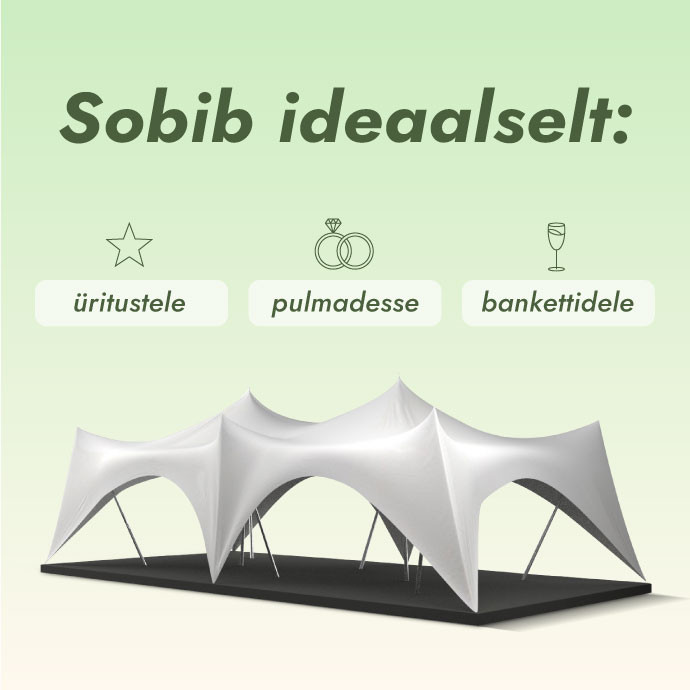 | Telgi laius | 8.55 m (Soovi korral võid mitu telki omavahel ühendada) |